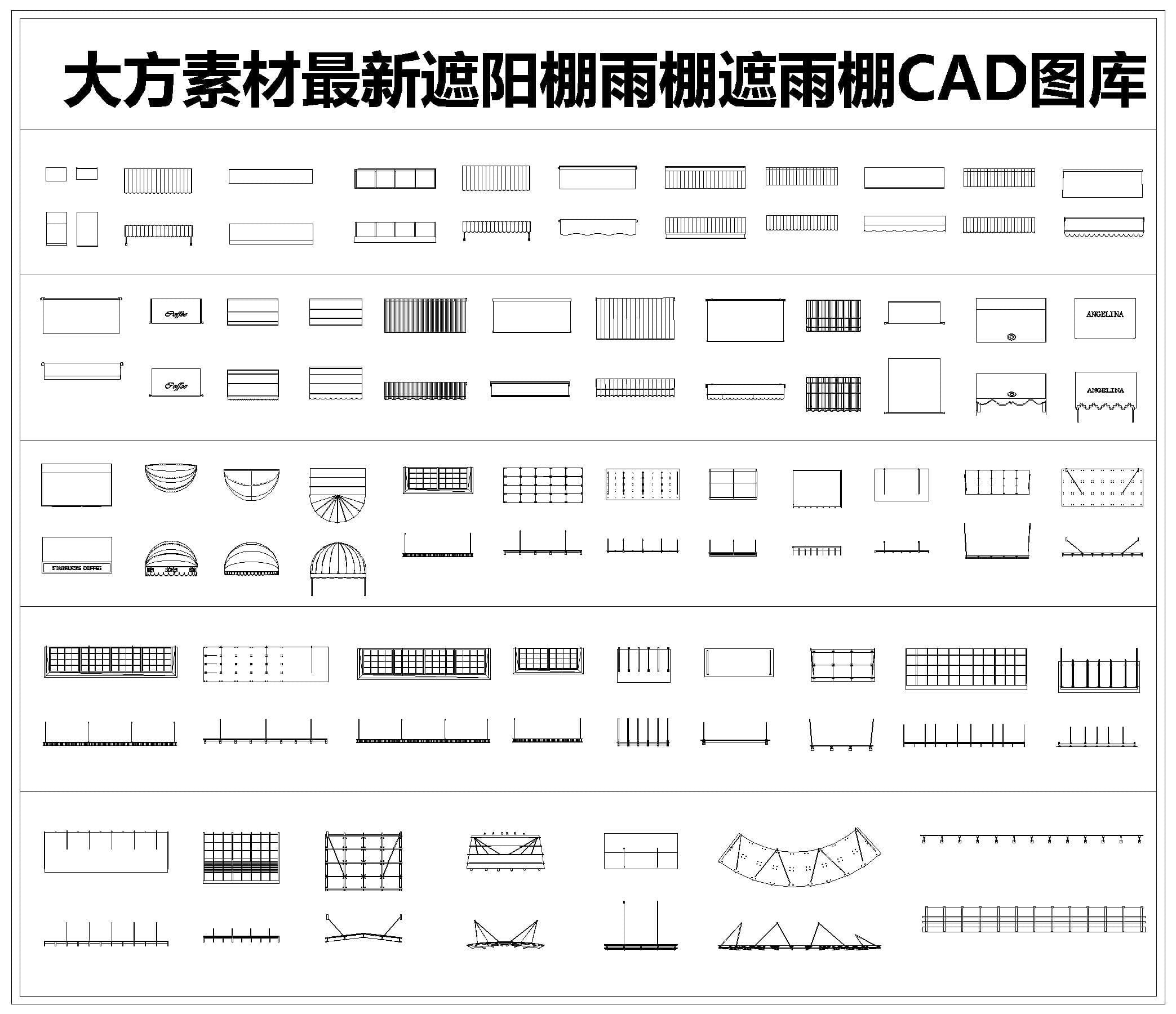 最新遮阳棚雨棚遮雨棚CAD图库