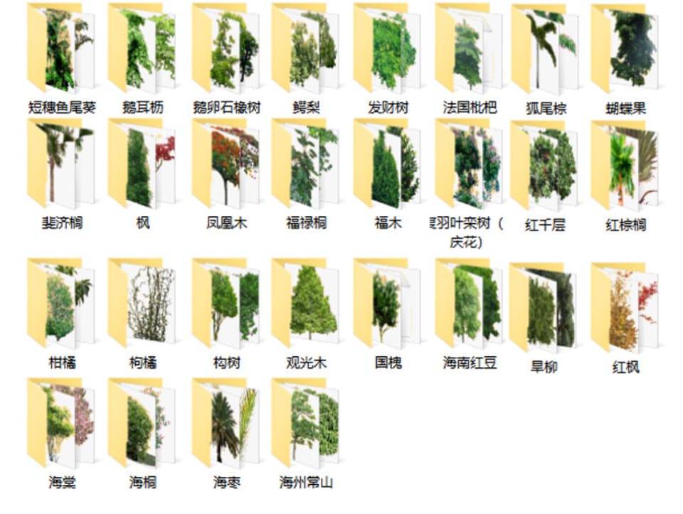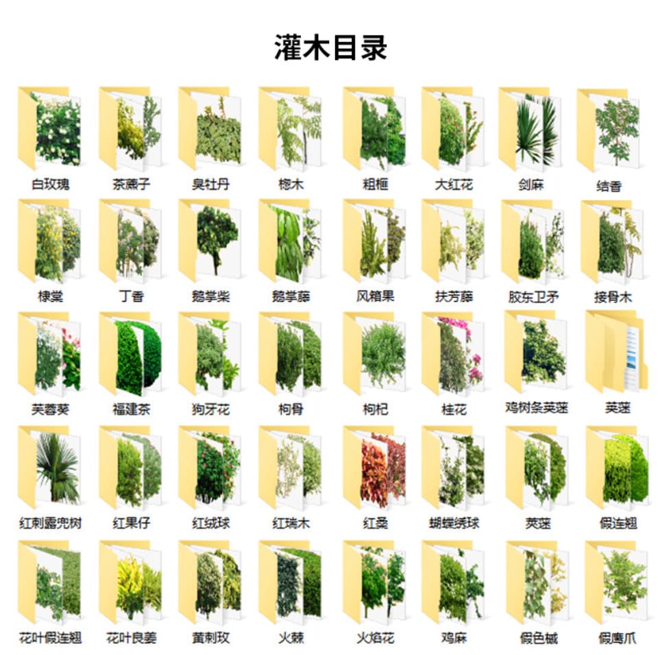 PS景观园林带名称植物乔木灌木PNG免抠花草树后期效果图绿植素材