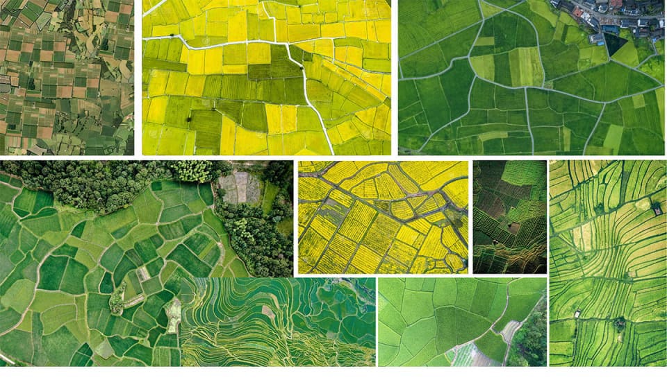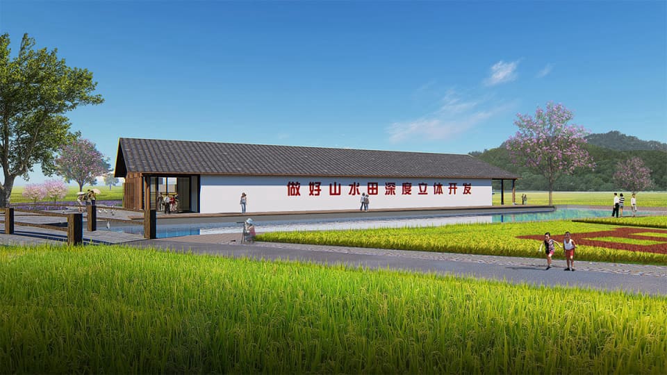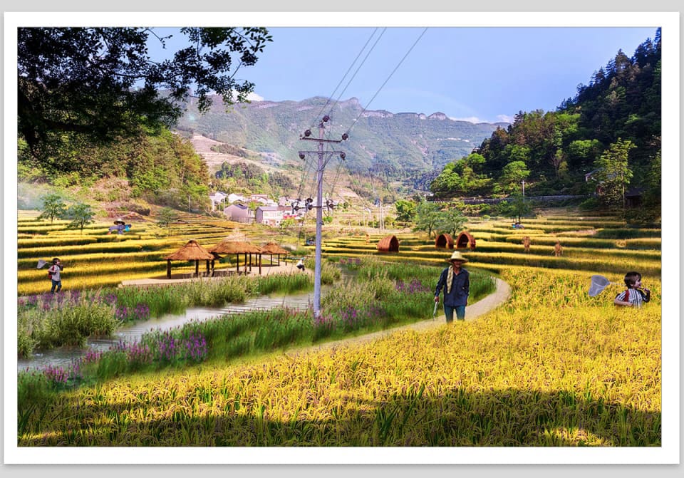 PS稻田农田景观美丽乡村田园风光规划田野鸟瞰效果图psd分层素材